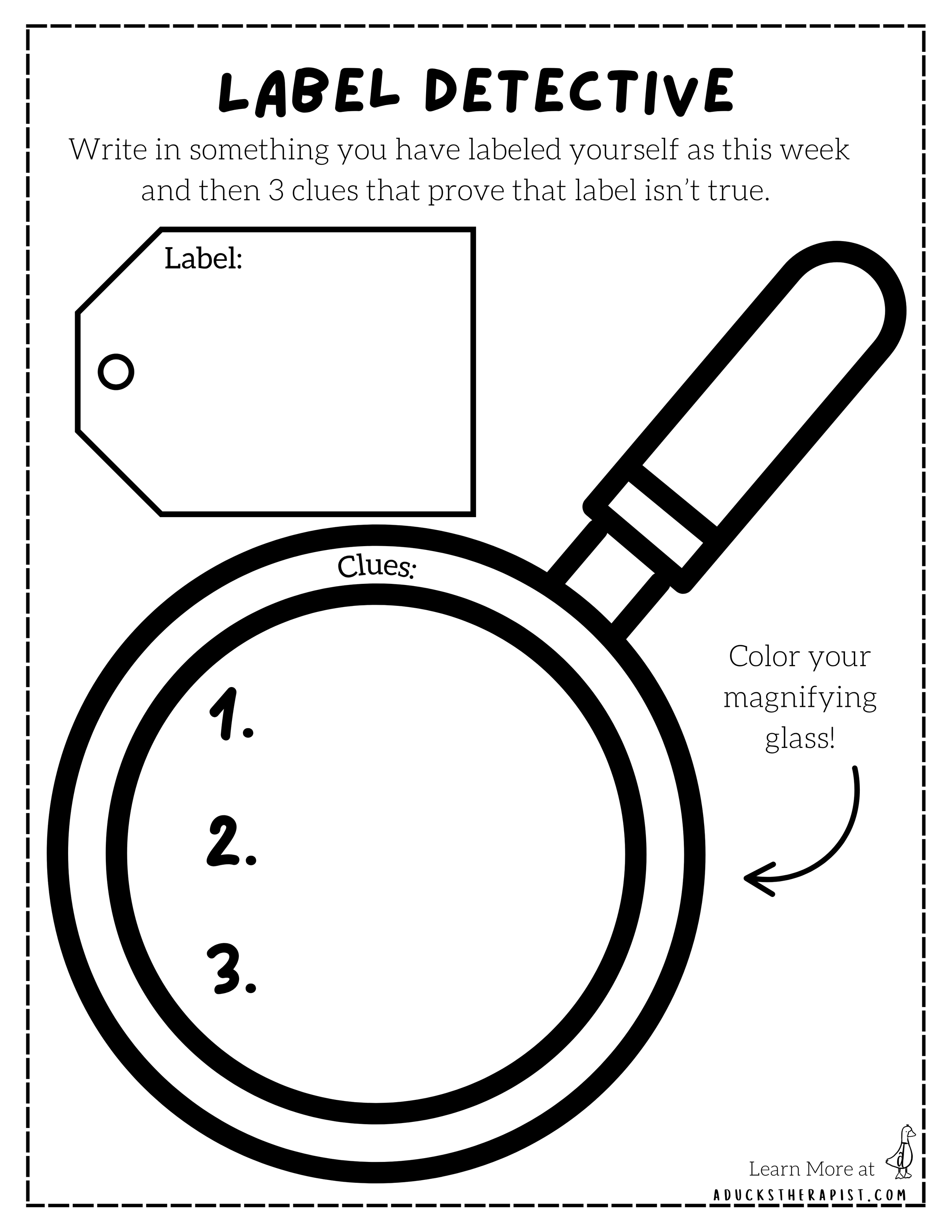 Spot the Label: Help your child notice labels like “I’m stupid.” Ask, “What did you just say about yourself?” Comment on the thought “Ooo, that is not very nice. Would you say something like this to your best friend? No? What would you tell them if they told you that they are stupid?”