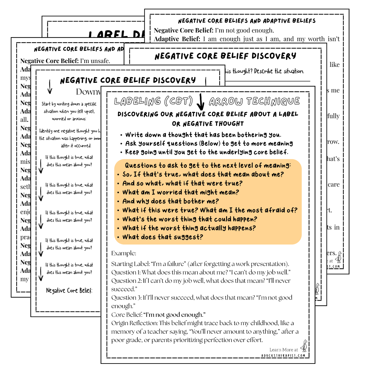 FREE Download Below: Downward Arrow Technique to Uncover Our Negative Core Beliefs. See pictures for example↓