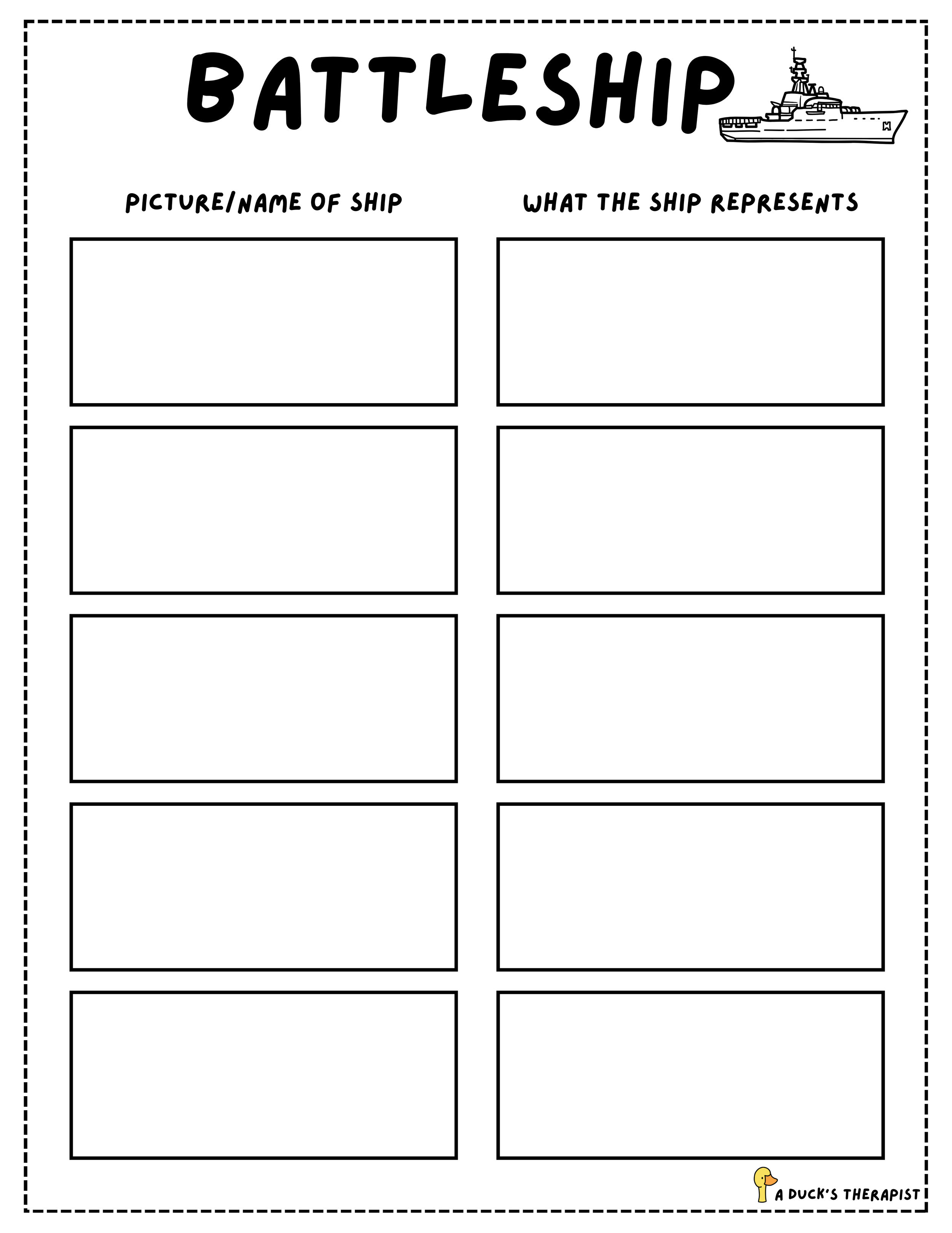 Therapeutic Battleship for Online Telehealth + Worksheet